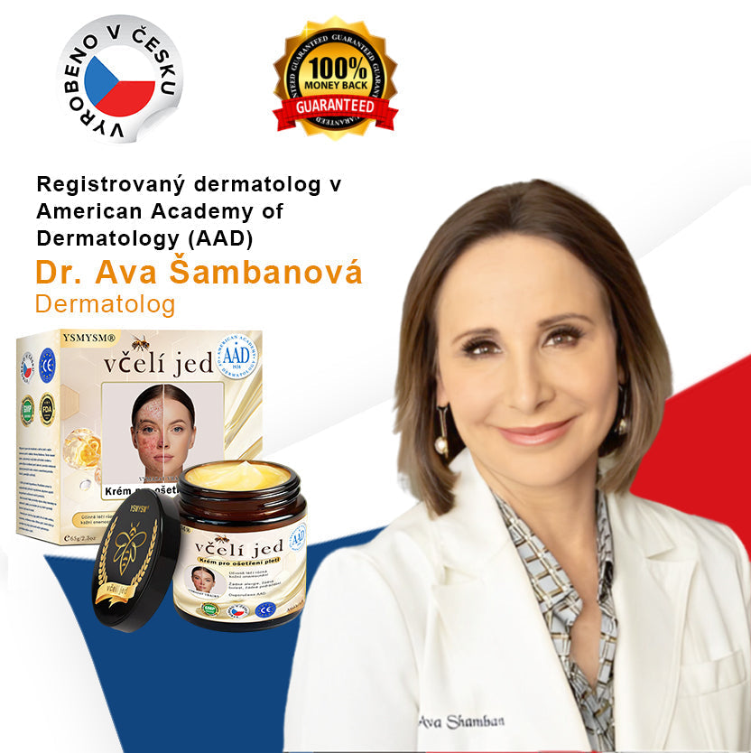 "Jako dermatolog jsem vždy byla vášnivá v hledání účinných, přírodních řešení pro kožní problémy. Po rozsáhlém výzkumu a testování s mým týmem v laboratoři a klinických zkouškách, které zahrnovaly více než 2 000 účastníků, jsem objevila, že včelí jed je silná přírodní složka pro řešení široké škály kožních problémů. To mě vedlo k vytvoření krému YSMYSM® Včelím Jedem Komplexní Krém—komplexního řešení navrženého tak, aby přirozeně a účinně ulevovalo od více kožních problémů s precizností." - Dr. Kylea Allora, MD. Dermatolog