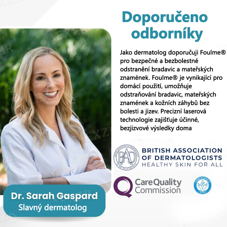 Přední britští dermatologové považují Foulme® za průlom v domácí léčbě pleti. Pravidelné používání přípravku Foulme®, podpořené klinickými studiemi a špičkovými dermatologickými asociacemi, prokazatelně účinně redukuje mateřská znaménka, bradavice, tmavé skvrny a kožní vady. Odborníci uznávají Foulme® jako bezpečnou, neinvazivní alternativu k nákladným profesionálním ošetřením, díky níž je kvalitní péče o pleť dostupná všem.